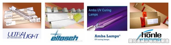 1.進口膠印刷機燈管:有IST、AMBA Alpha-cure、GEW、TCS、Nordson諾信、Voltarc WQP(Western Quartz即CS系列)SACK、Hanovia海諾威、英國派馬、日本EYE、GS等品牌大量用在海德堡 、羅蘭、高寶、櫻井、小森 、捷拉斯,互通,志圣,光源,琳得科等膠印機 柔印凹印機上。