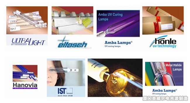 1.進口膠印刷機燈管:有IST、AMBA Alpha-cure、GEW、TCS、Nordson諾信、Voltarc WQP(Western Quartz即CS系列)SACK、Hanovia海諾威、英國派馬、日本EYE、GS等品牌大量用在海德堡 、羅蘭、高寶、櫻井、小森 、捷拉斯,互通,志圣,光源,琳得科等膠印機 柔印凹印機上。