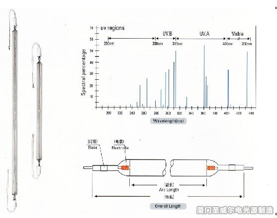 名稱來源 UV 是紫外線的英文Ultra-Violet Ray縮寫,工業(yè)用 UV 光源光譜范圍是200nm-450nm,以365nm為中心。按波段的不同,分別為UV-A,UV-B,UV-C各具有不同的用途。 常用規(guī)格 UV燈的強(qiáng)度取決于