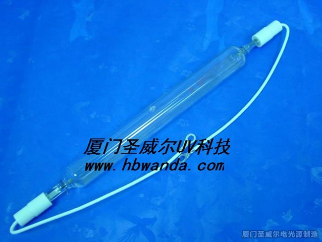 曬版燈又稱高壓氣體放電燈,俗稱 碘鎵燈 。該燈光譜有效范圍(350nm-450nm),峰值417nm,功率從500W-8KW,其燈具有壽命長,電弧穩(wěn)定,強度高曝光質(zhì)量好等優(yōu)點。 曬版燈由石英管材制造而